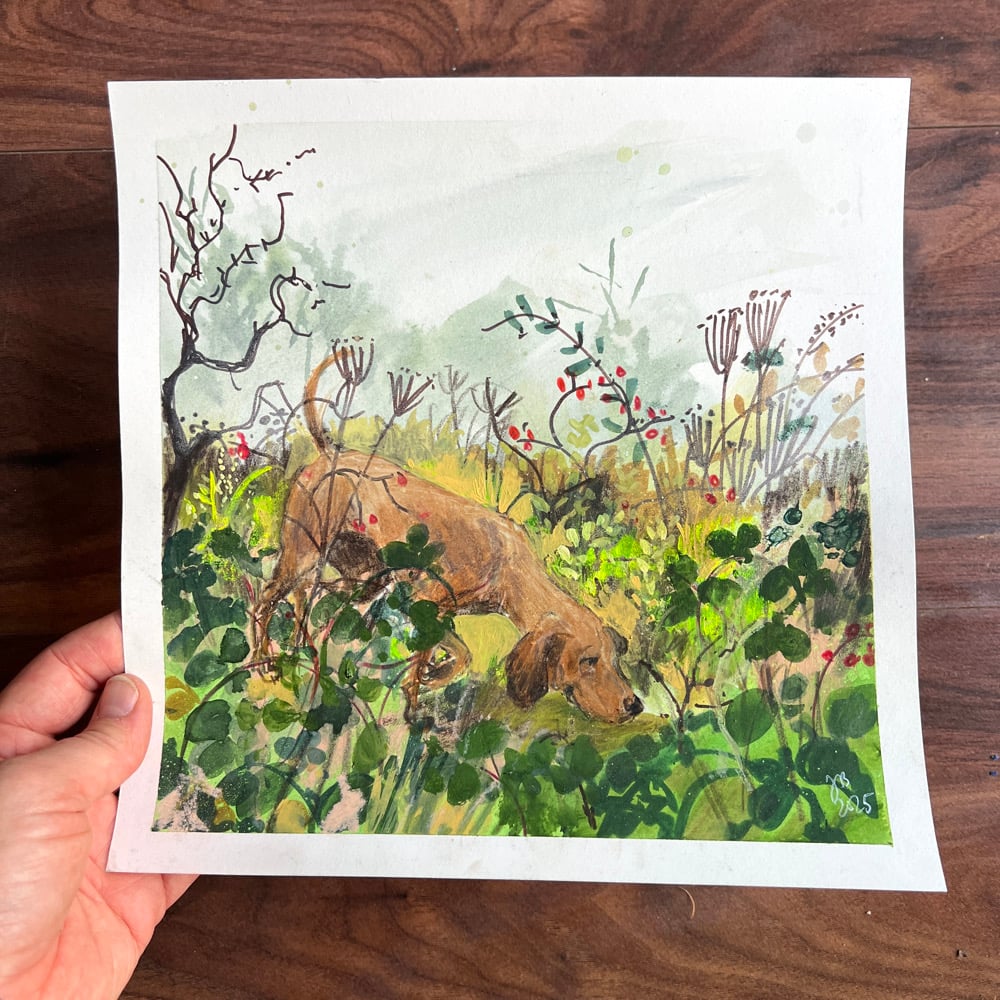 ORIGINAL ARTWORK - Hedgerow Hound - 25x25cm
