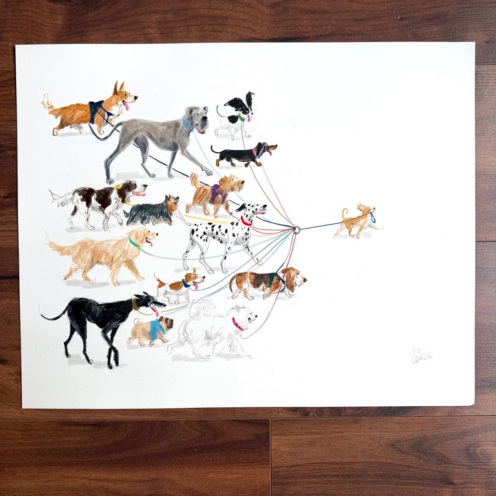 ORIGINAL ARTWORK - Dog Walker - 50x40cm