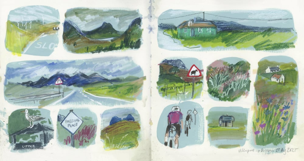 A reproduction of the sketchbook I took to Scotland in August 2025